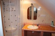 Jedná se o velký čtyřlůžkový pokoj s kuchyňkou a vlastní koupelnou a samostatným WC. V pokoji jsou dvě jednolůžka a jedno dvoulůžko ve vyvýšeném spaní nad přední částí(přístup po žebříčku)dále je možnost dalšího dvoulůžka formou přistýlky. Mimo jiné je pokoj zařízen také LCD televizí se satelitním příjmem, rádiem a možností připojení na internet WIFI . Kuchyňka je vybavená zakl.nádobím. lednicí, indukčním vařičem,rychlovarnou konvicí a mikrovlnnou troubou. V koupelně najdete luxusní sprchový kout. Hostům jsou k dispozici ručníky.